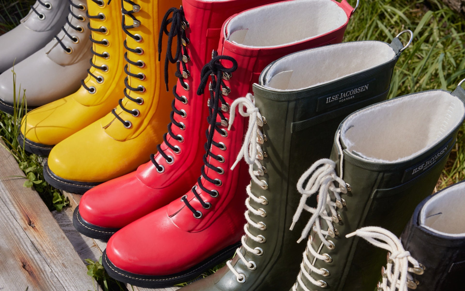 ILSE JACOBSEN HORNBÆKs produktportfölj kännetecknas av regnkläder, klänningar, skor, accessoarer och en exklusiv skönhetsserie – och självklart våra ikoniska gummistövlar.